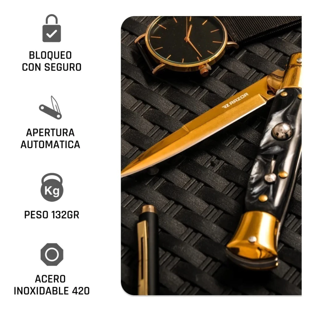 NAVAJA ESTILETE ITALIANO DORADO AUTOMATICO